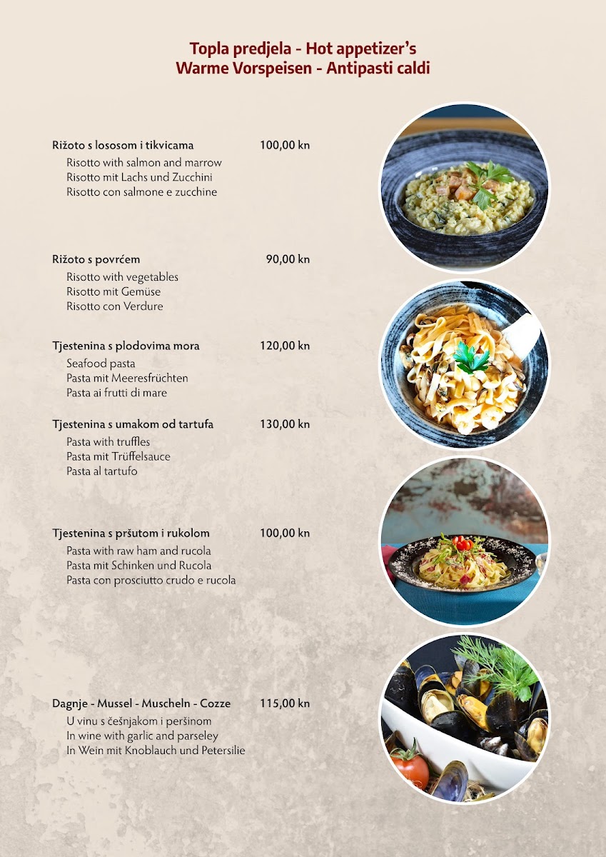 Restoran & lounge bar Meating in the heart of Pula offers an impressive culinary journey, balancing coastal flavors with hearty grill classics. Their diverse menu shines with expertly prepared meat dishes such as the tender Beefsteak with truffle cream and the iconic Fiorentina steak, which showcase rich, robust flavors. Seafood lovers will relish options like mussels, seafood pasta, and the fresh octopus salad, highlighting the Adriatic’s bounty. Warm appetizers and pastas, including risotto with salmon and pasta with truffles, add an elegant touch to the lineup.